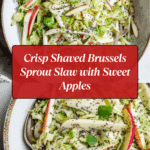This Shaved Brussels Sprout Slaw with Apples is a fresh and crunchy salad that balances the slight bitterness of Brussels sprouts with the sweetness of apples. It’s quick to prepare and perfect as a light side dish or a healthy snack.