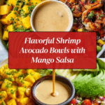 Savor the fresh and vibrant flavors of these Shrimp and Avocado Bowls with Mango Salsa and Lime-Chili Sauce. This dish combines juicy grilled shrimp with creamy avocado and a tangy mango salsa, all served over fluffy rice for a satisfying meal that’s perfect any day of the week.