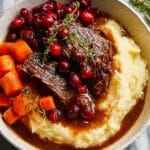 Keywords: beef roast, slow braised beef, cranberry balsamic glaze, slow cooker beef, comfort food, roast with cranberry sauce, fall dinner recipes