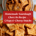 This Sourdough Cheez Its recipe combines tangy sourdough discard with sharp cheddar cheese to create crispy, flavorful homemade crackers. These bite-sized snacks are perfectly seasoned with garlic, onion powder, and salt, then baked to a golden crunch. Perfect for snacking or serving alongside dips, these crackers deliver a delightful cheesy flavor with a satisfying crunch made from simple pantry ingredients.