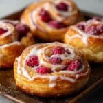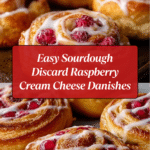 These Sourdough Discard Raspberry Cream Cheese Danishes are a delightful pastry that combines the tangy flavor of sourdough discard with a creamy sweet filling and a fresh raspberry topping. Perfect for breakfast or a sweet snack, these danishes are soft, flaky, and topped with an optional glaze for extra sweetness.