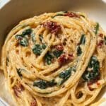 This Spaghetti & Spinach with Sun-Dried Tomato Cream Sauce is a quick and flavorful pasta dish perfect for any night of the week. The creamy sauce combined with the brightness of sun-dried tomatoes and fresh spinach creates a delightful balance of taste and texture.