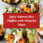 Keywords: spicy salmon muffins, sushi rice muffins, baked sushi, salmon appetizer, sushi muffins, spicy mayo topping, baked salmon recipe