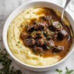 - Assemble the Dish: Serve the sizzling steak bites on a bed of creamy mashed potatoes. Generously ladle the savory beef gravy over the top and garnish with extra fresh herbs if desired. Enjoy immediately for best flavor.