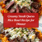 Steak Queso Rice is a delicious and comforting dish that combines tender, seasoned steak with creamy queso sauce over flavorful rice. It’s perfect for a satisfying weeknight meal that feels a bit special.