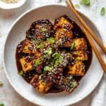 This Sticky Sesame Tofu recipe features crispy, golden tofu cubes coated in a flavorful sticky sesame sauce. With a perfect balance of soy sauce, brown sugar, garlic, and ginger, this dish is easy to make on the stovetop and makes a delicious vegan and vegetarian main or side dish that’s perfect for weeknight dinners or meal prep.