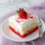 • Make sure the Jello is cooled but still pourable before drizzling to prevent it from soaking into the cake too quickly.