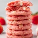 Keywords: strawberry cake mix cookies, easy strawberry cookies, white chocolate chip cookies, quick dessert, strawberry desserts