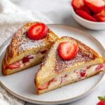 Keywords: Strawberry stuffed French toast, cream cheese French toast, breakfast recipe, stuffed brioche, sweet breakfast, pan-fried French toast