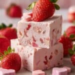 Keywords: Strawberry fudge, white chocolate fudge, no-bake fudge, strawberry dessert, easy fudge recipe, sweet treat