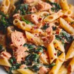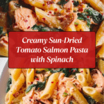 This delicious salmon pasta features tender fillets in a rich sun-dried tomato cream sauce with fresh spinach. It’s a comforting and elegant meal perfect for weeknights or special occasions.