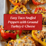 Taco Stuffed Peppers are a flavorful and hearty meal combining seasoned ground turkey, black beans, corn, and rice, all stuffed into vibrant bell pepper halves and baked to perfection with melted cheddar cheese on top. This easy-to-make dish is perfect for a family dinner that’s both nutritious and satisfying.