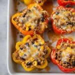 Keywords: taco stuffed peppers, stuffed peppers, ground turkey recipe, healthy stuffed peppers, Mexican-inspired dinner, easy baked stuffed peppers