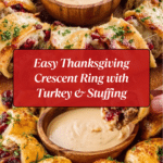 This Thanksgiving Crescent Ring is a delightful twist on traditional holiday flavors. Filled with turkey, stuffing, mashed potatoes, and cranberry sauce, it’s perfect for sharing and looks stunning on the table.