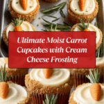 These Ultimate Moist Carrot Cupcakes are a delightful treat, bursting with fresh carrots and a hint of pineapple for extra moisture. Topped with creamy cream cheese frosting and a crunchy walnut crumble, they’re perfect for any occasion.