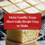 Vanilla Texas Sheet Cake is a moist, tender, and flavorful dessert perfect for any occasion. This large, thin cake is topped with a creamy vanilla frosting that melts into every bite, making it an irresistible treat for family and friends.