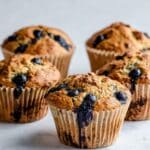 - If you don’t have fresh blueberries, frozen ones can be used—just do not thaw them before folding in to avoid discoloring the batter.