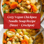 This Vegan Chickpea Noodle Soup is a hearty and comforting dish perfect for any day. Packed with nutritious vegetables, protein-rich chickpeas, and your favorite pasta, it’s simple to make on the stove or in a crockpot. Enjoy a cozy bowl that’s flavorful and easy to prepare.