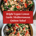 Keywords: vegan quinoa salad, lemon garlic quinoa, Mediterranean quinoa, kale quinoa bowl, vegan gluten free salad