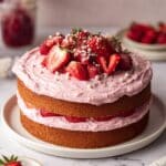 Keywords: vegan strawberry cake, dairy-free cake, strawberry puree cake, plant-based cake, strawberry frosting, egg-free cake