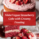 This Vegan Strawberry Cake is a moist, flavorful dessert made with fresh or frozen strawberries and a tender crumb. Perfect for plant-based diets, it uses dairy-free milk and oil in its batter, combined with natural strawberry puree for a beautiful pink hue and fruity taste. The cake is topped with vegan strawberry or strawberry cream cheese frosting, making it an ideal treat for birthdays or special occasions.