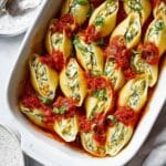 - Garnish and Serve: Remove from the oven and garnish with fresh basil leaves if desired. Serve immediately hot and enjoy the creamy, flavorful vegan stuffed shells.