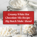 Keywords: white hot chocolate, hot chocolate mix, homemade hot chocolate, white chocolate drink, powder mix, big batch hot chocolate, cozy beverage