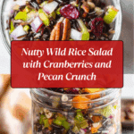 A vibrant and wholesome Wild Rice Salad with Cranberries, featuring nutty wild rice combined with toasted pecans, pistachios, dried cranberries, and fresh vegetables, all tossed in a zesty apple cider vinegar and Dijon mustard dressing. This salad offers a delightful mix of textures and flavors, making it a perfect healthy side dish or light meal.